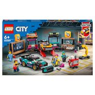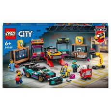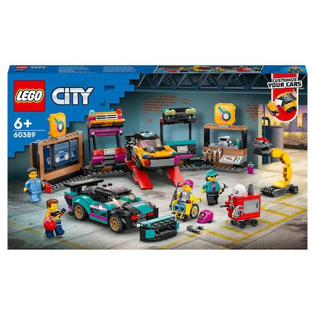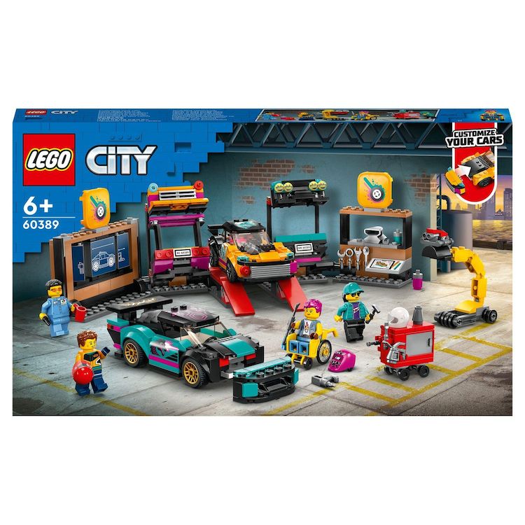 City 60389 Le garage de customisation, Jouet avec 2 Voitures, Atelier Automobile et 4 Minifigurines