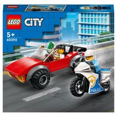 City 60392 La Course-Poursuite de la Moto de Police, Jouet Voiture de Course et 2 Minifigurines Policiers