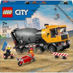 . JOUET DE CHANTIER POUR LES ENFANTS ? Les fans de gros engins de chantier vont adorer La bétonnière LEGO® City (60478), pour les garçons et les filles dès 7 ans. QUE CONTIENT LA BOÎTE ? ? Inclut tout ce dont les enfants ont besoin pour construire une bétonnière dotée d'une toupie rotative et de 8 pneus en caoutchouc, ainsi que 3 minifigurines d'ouvriers du bâtiment inspirant un jeu imaginatif. TOUPIE À BÉTON AVEC FONCTIONS RÉALISTES ? Les enfants peuvent abaisser la goulotte, actionner une molette pour faire tourner la toupie et mélanger le béton, puis verser les éléments de béton LEGO®. La cabine bascule pour accéder au moteur. ACCESSOIRES POUR MINIFIGURINES LEGO® ? Ce modèle réduit de bétonnière s'accompagne d'accessoires LEGO, dont une brouette, un panneau de signalisation, 2 barrières, un bloc-notes, une pelle et un balai. CADEAU POUR ENFANTS FASCINÉS PAR LES CHANTIERS ?- Amusante à construire, cette bétonnière constitue un cadeau très apprécié des garçons et des filles dès 7 ans qui aiment les véhicules et les jeux créatifs. UNE FAÇON AMUSANTE DE CONSTRUIRE ? L'application LEGO® Builder guide les enfants avec des outils de zoom et de rotation en 3D, ainsi que des fonctions de sauvegarde des sets et de suivi de la progression, pour enrichir l'expérience de construction. ENCORE PLUS DE SETS LEGO® CITY À DÉCOUVRIR ? Les enfants peuvent élargir leur univers de jeu en combinant ce modèle avec d'autres sets de construction LEGO City (vendus séparément) pour des aventures encore plus passionnantes. DIMENSIONS ? La bétonnière de ce set de construction de 371 pièces mesure plus de 9 cm de haut, 22 cm de long et 5 cm de large