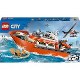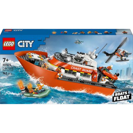 BATEAU FLOTTANT À PARTIR DE 7 ANS ? Le kit de construction Le bateau de sauvetage et l'hélicoptère des garde-côtes LEGO® City (60504) inclut 3 bateaux qui flottent et regorge de détails réalistes favorisant le jeu imaginatif. QUE CONTIENT LA BOÎTE ? ? Tout ce dont les enfants ont besoin pour construire un patrouilleur des garde-côtes LEGO® qui flotte, un hélicoptère de sauvetage et 2 canots à moteur qui flottent, ainsi que 5 minifigurines et un chien. INSPIRER LE JEU DE SIMULATION ? Les enfants peuvent retirer des étages du pont du bateau pour explorer le poste de commandement, la cuisine et les cabines, et déployer le canot à moteur depuis la rampe pour des missions de recherche et de sauvetage. ACCESSOIRES POUR MINIFIGURINES LEGO® ? Inclut un extincteur, une trousse médicale, une bouée de sauvetage, un talkie-walkie et une gamelle pour chien. CADEAU POUR LES ENFANTS QUI AIMENT JOUER LES HÉROS ? Ce set inspirant des jeux de simulation constitue un cadeau parfait pour les enfants, garçons ou filles, dès 7 ans qui aiment les jouets interactifs et les aventures de sauvetage. UNE FAÇON AMUSANTE DE CONSTRUIRE ? L'application LEGO® Builder guide les enfants dans la construction intuitive. Ils peuvent sauvegarder leurs sets, suivre leur progression, zoomer et faire pivoter les modèles en 3D. PLUS DE SETS LEGO® CITY À DÉCOUVRIR ? Les enfants peuvent multiplier les possibilités de jeu et pimenter leurs aventures en combinant ces véhicules de secours avec d'autres sets de la gamme LEGO® City (vendus séparément). DIMENSIONS ? Le bateau des garde-côtes de ce set de construction LEGO® de 742 pièces mesure plus de 18 cm de haut, 42 cm de long et 16 cm de large