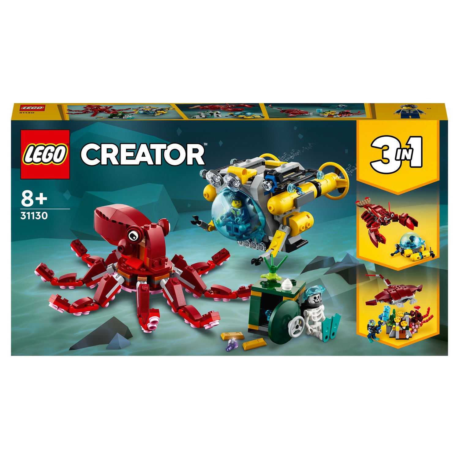 Creator 3 en 1 31130 La Mission du Trésor Englouti, Jouet d'Exploration Sous-Marine