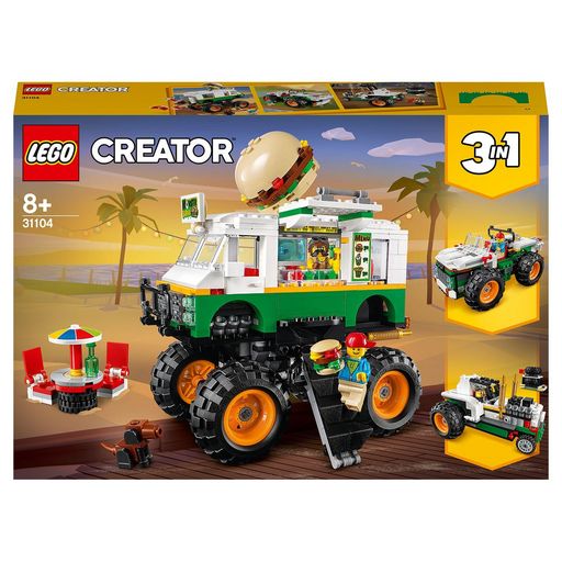 Prépare de délicieux et savoureux hamburgers dans ton amusant Monster Truck à transformer avec cette boîte LEGO® Creator 31004.