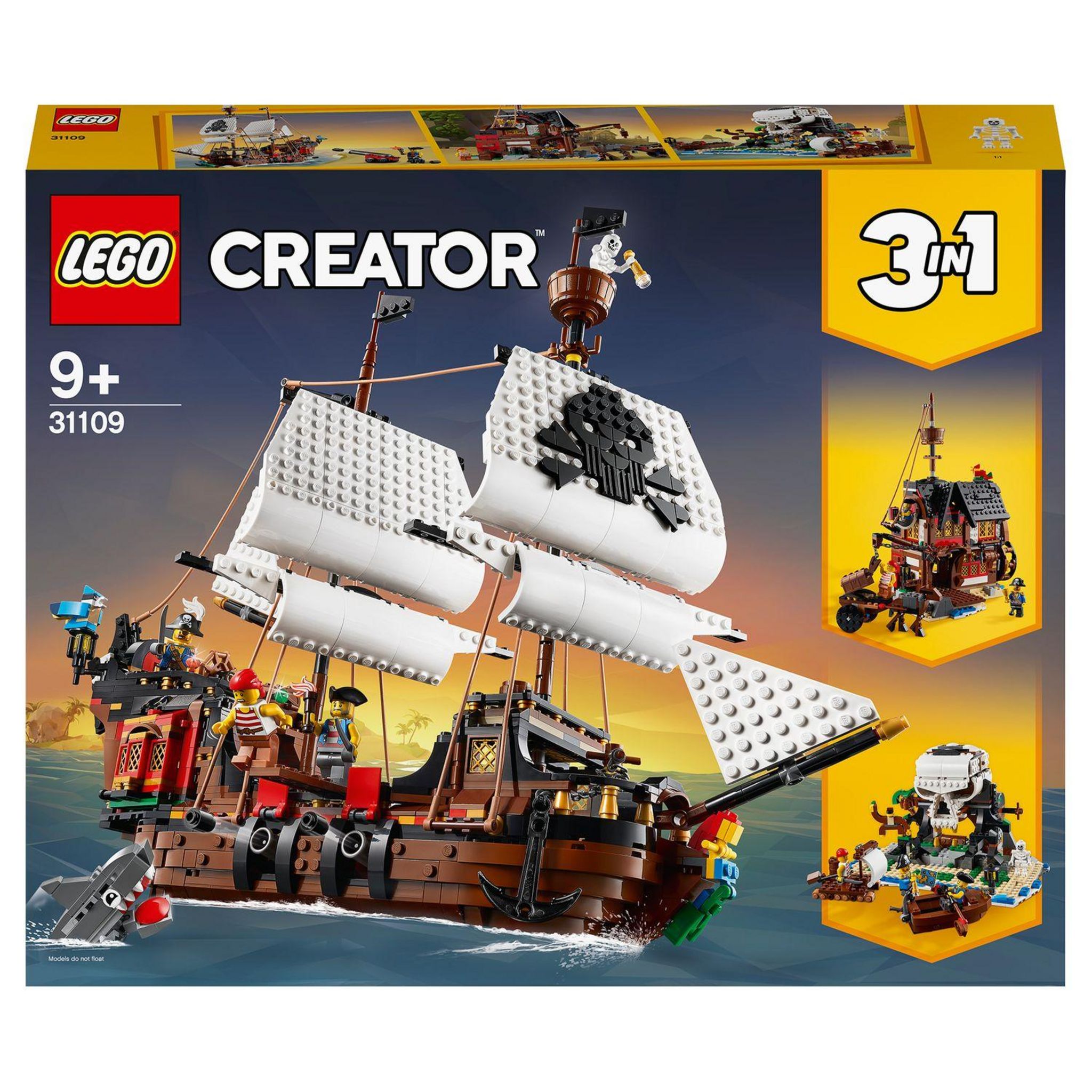 Creator 31109 Le bateau pirate - Auberge et Île au Crâne, Jouet Créatif 3 en 1, pour Enfants de 9 Ans et Plus
