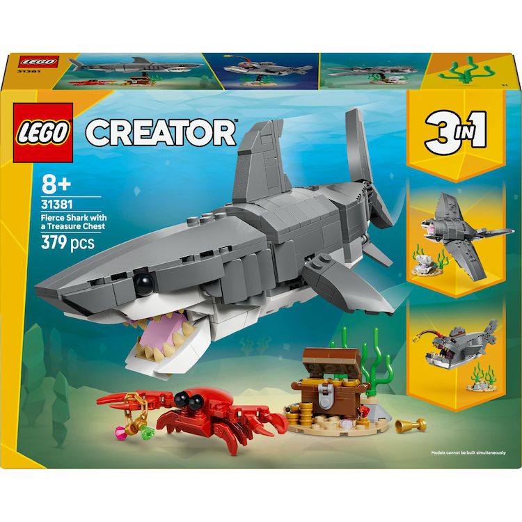 Les garçons et les filles dès 8 ans peuvent imaginer des histoires sous-marines amusantes avec Le redoutable requin et le coffre au trésor LEGO® Creator 3-en-1 (31381). Ce superbe set d’animaux marins offre aux enfants 3 options de construction avec les mêmes briques.