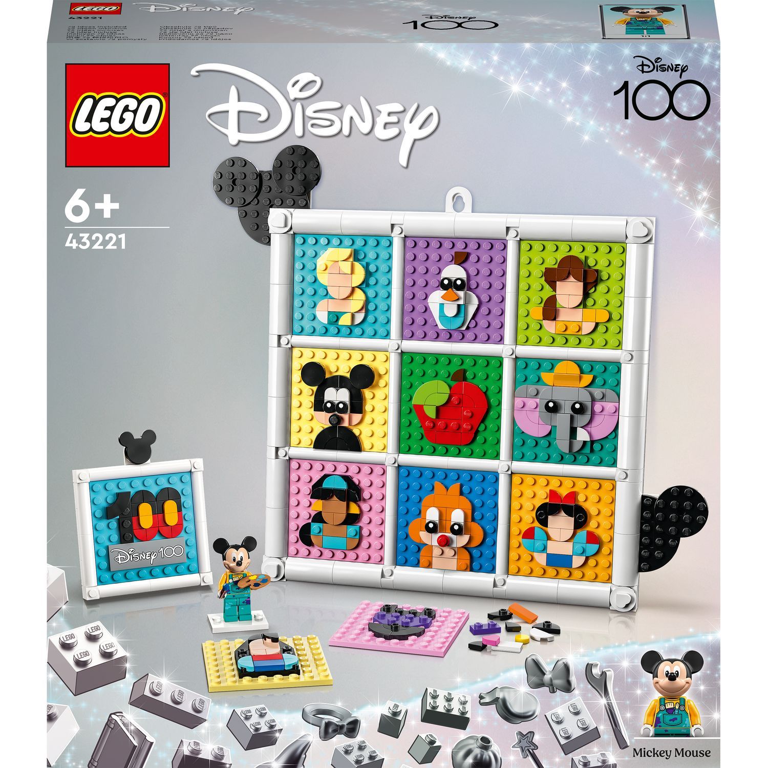 Disney 43221 - 100 Ans d'Icônes Disney, Set de Création d'Art Mural de Personnages, 72 Motifs de Mosaïque Amusants à Créer, Incluant la Minifigurine de Mickey Mouse