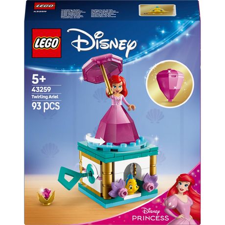 Illuminez la journée d'un enfant fan de La Petite Sirène de Disney dès 5 ans avec Ariel tournoyante LEGO® ? Disney (43259). Le set inclut un support fantaisie à construire, doté d'une plaque tournante, d'une clé, d'une fourchette et d'une place pour Polochon, ainsi que d'un « diamant » de chaque côté. Les enfants peuvent ranger Ariel à l'intérieur de la robe « diamant » et utiliser l'ombrelle en guise de couvercle. Ce modèle Disney à construire est un beau cadeau à offrir aux filles et aux garçons fans du film. C'est une superbe décoration et un jouet passionnant pour le quotidien. Ce jouet permet de renforcer la confiance des enfants et de stimuler leur imagination. Il peut être utilisé seul ou associé à d'autres sets de construction LEGO ? Disney (vendus séparément). L'application LEGO Builder propose une aventure de construction amusante et intuitive, qui invite les enfants à zoomer, faire pivoter les modèles en 3D, sauvegarder leurs sets et suivre leur progression.