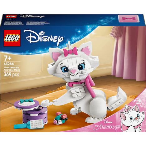 . MODÈLE D'ANIMAL À CONSTRUIRE POUR ENFANTS ? Enchantez les filles et les garçons dès 7 ans avec L'adorable Marie Les Aristochats (43286), un set amusant dont la construction inspire des jeux pleins de fantaisie et stimule la créativité. CHAT EN BRIQUES POUR JOUER OU EXPOSER ? Inclut une version articulée de Marie, du film de Disney Les Aristochats, une boîte cadeau, un n?ud et plus encore, pour des jeux amusants ou pour décorer une chambre. OPTIONS DE POSES CRÉATIVES ? Variez les poses en tournant la tête de Marie, en soulevant l'une de ses pattes, en la faisant s'asseoir, en bougeant sa queue et ses oreilles et en mettant ou retirant son n?ud rose. ACCESSOIRES DE CONSTRUCTION ? Ce set de construction inclut une boîte cadeau en briques violette avec un couvercle amovible, une brosse bleue, une souris en briques, un poisson et un n?ud en tissu rose pour Marie de Disney. IDÉE DE CADEAU POUR ENFANTS ? Ce jeu de construction LEGO® ? Disney est une fabuleuse idée de cadeau pour les filles, les garçons et les fans de cinéma dès 7 ans, qui aiment les jouets avec des animaux ou Les Aristochats de Disney. PLUS DE JOUETS STIMULANT L'IMAGINATION ? Ajoutez ce jeu de construction à la collection de votre enfant et découvrez d'autres modèles (tous vendus séparément) de la vaste gamme de jouets créatifs LEGO® et de sets de construction LEGO ? Disney. AIDE À LA CONSTRUCTION ? Découvrez les instructions intuitives de l'application LEGO® Builder, où les enfants peuvent zoomer, faire pivoter les modèles en 3D, suivre leur progression et enregistrer leurs sets, tout en développant des compétences. DIMENSIONS ? Le personnage de Marie, du film Les Aristochats de Disney, de ce set de construction LEGO® ? Disney de 369 pièces, mesure plus de 15 cm de haut, 9 cm de large et 13 cm de profondeur