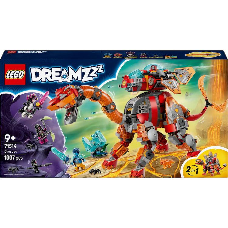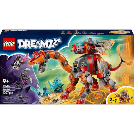 KIT DE CONSTRUCTION DINOSAURE ? Faites fuser l'imagination des enfants avec le set de construction Le vaisseau-dino LEGO® DREAMZzz? (71514) pour garçons et filles dès 9 ans. OPTIONS DE CONSTRUCTION 2-EN-1 ? Les enfants peuvent choisir de construire un brontosaure né de roches en fusion avec une double queue, ou un stégosaure blindé avec une queue en forme de masse. Chaque dinosaure est complété d'un vaisseau spatial. JOUETS DE L'ESPACE ? Les détails amusants incluent un ?uf en diamant qui fait éclore 2 cristo-créatures, une figurine de gnome de la nuit, 3 araignées, ainsi que 3 épées à collectionner, une faux et une lance. 4 MINIFIGURINES LEGO® DREAMZzz? ? Le set inclut les minifigurines de Logan, Cooper, l'Empereur des cauchemars et Arika, pour donner vie à l'action et favoriser le jeu d'imagination créatif. IDÉE DE CADEAU POUR ENFANTS ? Ce set fantastique est un cadeau d'anniversaire amusant pour les garçons et les filles fans de dinosaures, de l'espace ou de la série télévisée LEGO® DREAMZzz?. UNE CONSTRUCTION IMMERSIVE ? Ce set LEGO® DREAMZzz? inclut des instructions de montage basées sur une histoire, également disponibles dans l'application LEGO® Builder avec des outils de zoom, rotation et suivi de la progression. ENCORE PLUS DE JOUETS CRÉATIFS ? Poursuivez l'aventure imaginative avec d'autres sets de construction de la collection LEGO® DREAMZzz? (vendus séparément), mettant en scène des animaux, des robots et des véhicules. DIMENSIONS ? Dans sa version brontosaure, ce jouet de 1 007 pièces mesure plus de 23 cm de haut, 44 cm de large et 14 cm de profondeur