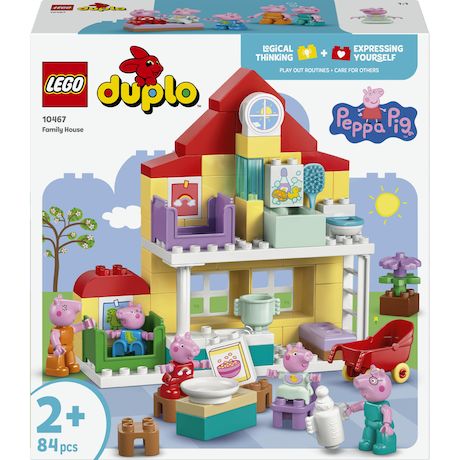 Grâce au jeu de construction LEGO DUPLO Peppa Pig La maison familiale (10467), les tout-petits mettent en scène la vie de leurs personnages préférés de la série TV Peppa Pig . Ce jeu créatif pour filles et garçons de 2 ans et plus inclut les 5 membres de la famille de Peppa Pig, dont Evie Pig.