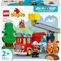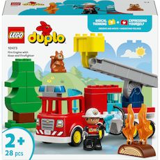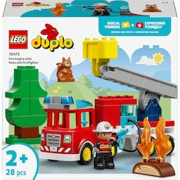 JOUER AVEC UN VÉHICULE D'INTERVENTION ? Les enfants dès 2 ans développent leur imagination en mettant en scène des histoires passionnantes sur la lutte contre l'incendie avec le set Le camion de pompiers LEGO® DUPLO® Ma ville (10473). JOUET DE POMPIER LEGO® DUPLO® ? Ce jouet invite les enfants à s'imaginer dans la peau d'un héros du quotidien. Ils utilisent l'échelle pour éteindre le feu avec la lance à incendie tandis qu'un écureuil observe l'action de loin. DE NOMBREUX ÉLÉMENTS AMUSANTS ? Inclut un camion de pompiers avec une remorque détachable, une figurine de pompier, un écureuil LEGO® DUPLO®, une hache et une clé favorisant le jeu de rôle et les histoires de sauvetage. CONSTRUIRE L'INTELLIGENCE ÉMOTIONNELLE ? Ce jouet éducatif aide les tout-petits à imaginer et à comprendre les émotions que le pompier peut ressentir lorsqu'il lutte contre le feu. CADEAU POUR TOUT?PETITS ? Ce set de pompier LEGO® DUPLO® constitue un petit cadeau amusant à offrir aux enfants de 2 ans et plus qui aiment les véhicules et les jeux mettant en scène la vie réelle. TESTÉ POUR LA SÉCURITÉ DES TOUT-PETITS ? Toutes les briques de ce set LEGO® DUPLO® Ma ville ont fait l'objet de tests complets afin de s'assurer qu'elles répondent aux normes de sécurité pour les enfants. JOUETS D'APPRENTISSAGE POUR JEUNES CONSTRUCTEURS ? Regorgeant de personnages variés et de fonctions amusantes, les sets LEGO® DUPLO® invitent les tout-petits à observer, à imiter et à comprendre le monde qui les entoure. DIMENSIONS ? Le véhicule d'intervention d'urgence de ce set de pompier mesure plus de 16 cm de haut, 26 cm de long et 8 cm de large