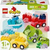 Ils peuvent commencer par construire les véhicules LEGO DUPLO principaux : un hélicoptère avec hélice rotative, un camion à benne basculante, un camion de pompiers avec échelle articulée et une voiture. Puis ils exercent leur motricité fine et leur coordination œil-main pour démonter ces modèles et en créer de nouveaux au gré de leur créativité. De la voiture de police au camion extra-long en passant par le bus à étage, les enfants laissent libre cours à leur créativité en combinant les briques LEGO DUPLO de façon innovante.