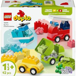 CONSTRUCTION ET TRANSFORMATION DE VÉHICULES ? Le jouet d'éveil Les véhicules créatifs LEGO® DUPLO® My First (10474) pour les tout-petits inclut 42 pièces et 3 essieux, pour créer de nombreux véhicules et d'amusantes histoires sur route. VÉHICULES DU QUOTIDIEN ? Les principaux modèles du kit de construction incluent une petite voiture, un hélicoptère LEGO® DUPLO® avec une hélice qui tourne, un camion à benne basculante et un camion de pompiers avec une échelle. CONSTRUCTION CRÉATIVE ? Les jeunes constructeurs exercent leur motricité fine et leur coordination ?il-main pour démonter les briques des véhicules principaux et assembler de nouveaux modèles au gré de leur créativité. JOUETS D'APPRENTISSAGE POUR TOUT-PETITS ? Ce jouet éducatif renforce la concentration des petits constructeurs qui s'appliquent à créer leur propre véhicule en utilisant toutes les fonctions de manière innovante et surprenante. CADEAU À PARTIR DE 18 MOIS ? Ce jouet d'éveil constitue un cadeau amusant pour les petits garçons et les petites filles créatifs, ainsi que pour les très jeunes fans de voitures. SÉCURITÉ ÉPROUVÉE ? Les éléments de ce set LEGO® DUPLO® pour tout-petits ont été rigoureusement testés afin de s'assurer qu'ils répondent aux normes de sécurité les plus strictes. EXPLORER LES PASSIONS DES ENFANTS ? Des sets d'animaux aux sets de voitures colorés, il existe un jouet d'éveil LEGO® DUPLO® pour enflammer l'imagination de tous les petits enfants curieux. DIMENSIONS ? Le camion de pompiers de ce set éducatif de 42 pièces mesure plus de 13 cm de haut, 6 cm de long et 10 cm de large