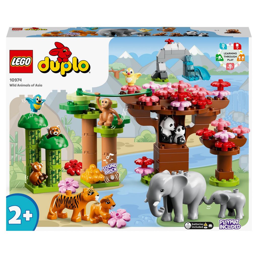 - Cet ensemble LEGO DUPLO sera très apprécié des enfants âgés de 2 ans et plus, car ils pourront voyager dans les contrées sauvages d'Asie à bord du tapis de jeu pliable, et explorer la nature avec ses 11 figurines d'animaux