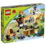 l'équipe du film est en safari et ils ont repéré de nombreux animaux sauvages, notamment une autruche, un hippopotame, une girafe, un léopard, un éléphant avec son bébé et même un dangereux crocodile avec un poisson dans la bouche ! et lorsque le soleil se couche, les membres de l'équipe adorent s'asseoir autour du feu de camp pour se reposer. comprend 8 animaux lego duplo et 3 figurines duplo : 2 hommes et une femme.