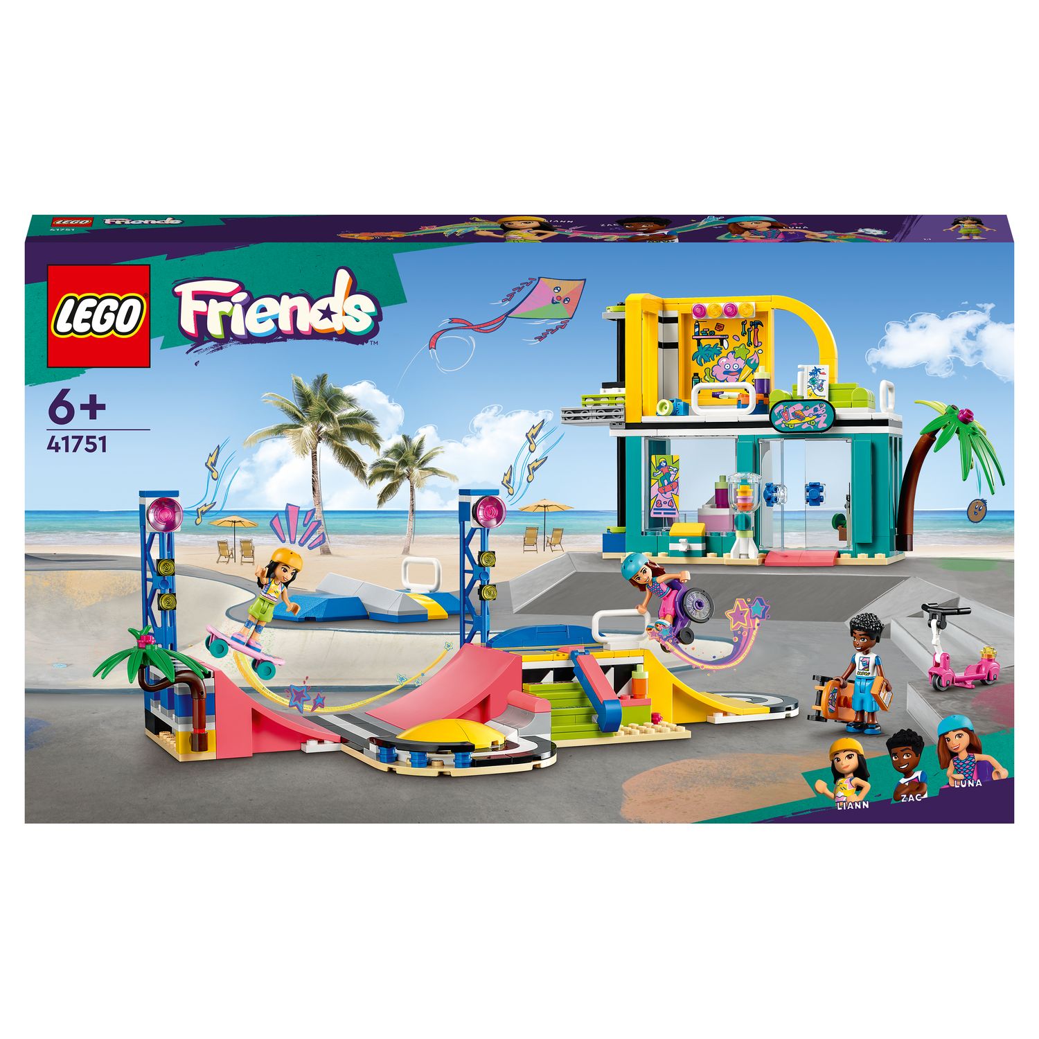 - Ce jouet pour les enfants de 6 ans et plus présente les mini-poupées LEGO Friends Liann (sur un skateboard), Zac (sur des patins) et Luna (s'exerçant à un plant de main)