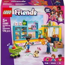 . UNE ÉPICERIE À CONSTRUIRE ? Ce jouet amusant pour les filles et les garçons dès 5 ans inclut 2 mini-poupées, un chien, un chariot, un panier, un carton de provisions et de nombreux aliments favorisant le jeu de simulation. JEUX DE RÔLE SUR LE THÈME DES COURSES ? L'épicerie de Heartlake City LEGO® Friends. (42680) permet aux enfants d'imaginer des jeux amusants dans le cadre d'une supérette : remplir les rayons, faire les courses, payer les produits et recycler. 2 PERSONNAGES LEGO® FRIENDS ? Inclut les mini-poupées d'Autumn et Zac, un chien et de nombreux détails amusants, tels que des aliments qui inspirent le jeu d'imagination. ACCESSOIRES DE COURSES ? Pain, donuts, jus de fruits, lait, pâtes, chewing-gum, sandwich, pomme, banane, fraises, cerises, carottes, pop-corn, plante et bien d'autres choses encore. IDÉE DE CADEAU ? Ce jouet favorisant le jeu de simulation est un joli cadeau d'anniversaire pour les filles et les garçons dès 5 ans, qui aiment mettre en scène des activités du quotidien comme faire les courses à la supérette. SÉRIE EN LIGNE ? Découvrez encore plus d'idées de jeux créatifs avec d'autres sets (vendus séparément) et la série en ligne LEGO® Friends : Un Nouveau Chapitre, où les enfants font connaissance avec les personnages de Heartlake City. UNE FAÇON AMUSANTE DE CONSTRUIRE ? L'application LEGO® Builder guide les enfants dans la construction intuitive. Ils peuvent sauvegarder leurs sets, suivre leur progression, zoomer et faire pivoter les modèles en 3D. DIMENSIONS ? L'épicerie de ce set de 176 pièces mesure plus de 8 cm de haut, 15 cm de large et 9 cm de profondeur