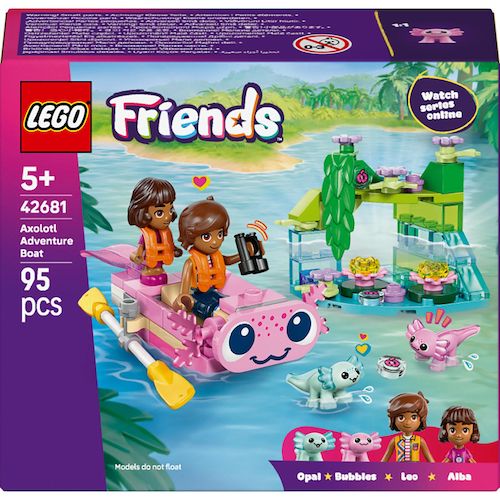 Inspirez des histoires amusantes aux filles et aux garçons dès 5 ans avec Le bateau d’aventures axolotl LEGO® Friends (42681). Le set inclut 1 mini-poupée, 1 micro-poupée, 2 mini axolotls et des accessoires favorisant le jeu créatif.