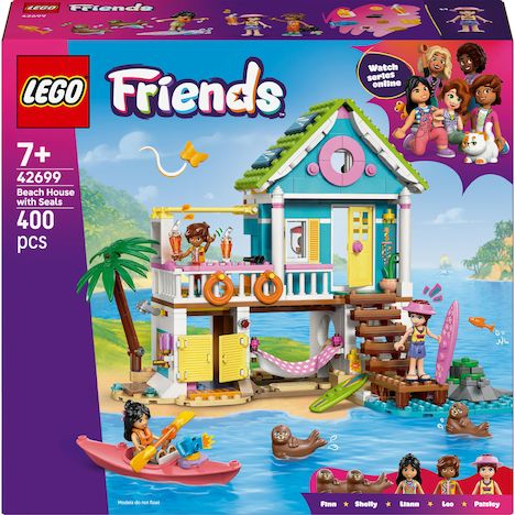 . MAISON DE PLAGE À CONSTRUIRE ? Incitez les enfants dès 7 ans à raconter des histoires créatives avec La maison sur la plage et les phoques pour filles et garçons, incluant 3 mini-poupées, 2 figurines de phoques et des accessoires. JEU AVEC DES ANIMAUX MARINS ? Les enfants peuvent créer leurs propres aventures de vacances en observant les phoques et en s'amusant sur la plage de sable où se trouvent un hamac et un kayak. 3 PERSONNAGES LEGO® FRIENDS ? Le set La maison sur la plage et les phoques LEGO® Friends (42699) inclut les mini-poupées de Léo, Liann et Paisley, ainsi que 2 figurines d'animaux favorisant le jeu d'imagination. DE NOMBREUX ACCESSOIRES ? Ce kit de construction de maison de plage inclut un appareil à smoothies, 3 lits, une table et des sièges, des boissons, une douche extérieure, du sable avec des trésors cachés, un kayak, un hamac, un surf et plus encore. IDÉE DE CADEAU ? Ce set incluant une maison à construire est un cadeau d'anniversaire amusant pour les filles et les garçons de 7 ans et plus qui aiment les animaux marins et les modèles de maisons. UNE FAÇON AMUSANTE DE CONSTRUIRE ? L'application LEGO® Builder guide les enfants dans la construction intuitive. Ils peuvent sauvegarder leurs sets, suivre leur progression, zoomer et faire pivoter les modèles en 3D. SÉRIE EN LIGNE ? Découvrez encore plus d'idées de jeux créatifs avec d'autres sets (vendus séparément) et la série en ligne LEGO® Friends : Un Nouveau Chapitre, où les enfants font connaissance avec les personnages de Heartlake City. DIMENSIONS ? La maison de ce set LEGO® Friends de 400 pièces mesure plus de 18 cm de haut, 28 cm de large et 18 cm de profondeur