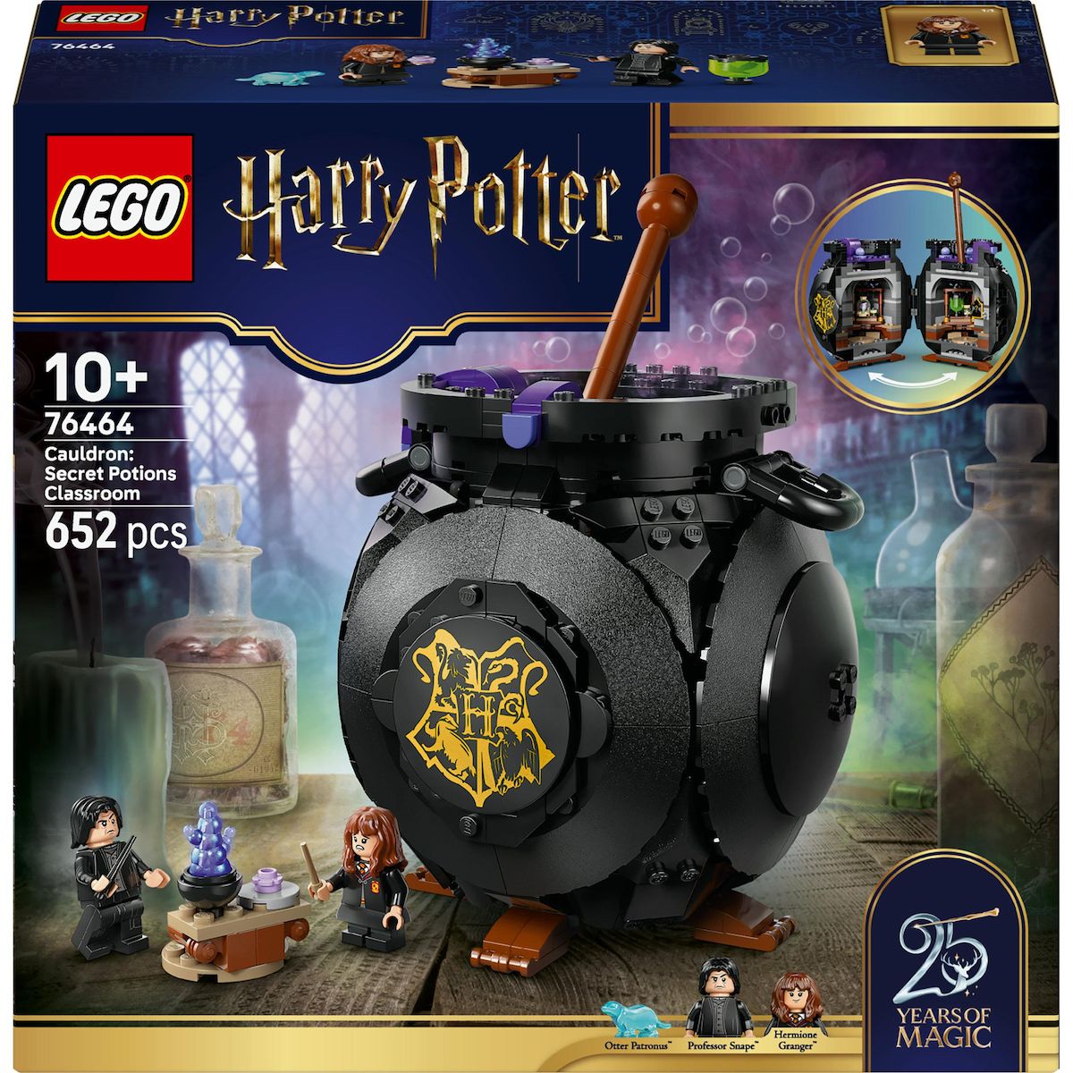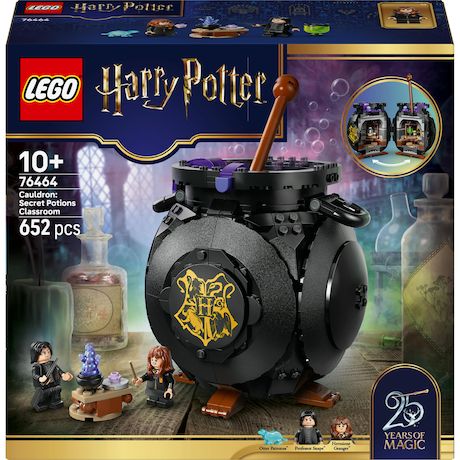 . EXPOSER ET JOUER ? Ce set de construction LEGO® Harry Potter? (76464) invite les enfants à créer un chaudron bouillonnant avec un cours de potions caché. SALLE DE CLASSE CACHÉE ? Déplacez la spatule pour révéler la salle de alte avec des tables amovibles pour jouer facilement, un tableau, des flacons et des ingrédients LEGO® pour fabriquer un Philtre d'amour et les potions Tue-loup et Polynectar. 2 MINIFIGURINES LEGO® HARRY POTTER? ? Recréez un cours de potions de Poudlard avec le professeur Rogue et Hermione Granger?, chacun muni d'une baguette. DÉTAILS SPÉCIAUX ? Découvrez le Patronus? loutre d'Hermione, qui fait partie d'une collection de Patronus spéciale 25e anniversaire de LEGO® Harry Potter? (sets vendus séparément), ainsi qu'un portrait de Poudlard, sur 14 à collectionner. CADEAU POUR ENFANTS ? Ce modèle LEGO® est un beau cadeau créatif à offrir à des filles et des garçons fans dès 10 ans, afin d'alimenter leur passion pour les aventures fantastiques de Harry Potter?. INSTRUCTIONS DE MONTAGE NUMÉRIQUES ? L'appli LEGO® Builder guide les enfants et leur permet de vivre une aventure de construction numérique : ils peuvent zoomer, faire pivoter les modèles en 3D, sauvegarder leurs sets et suivre leur progression. COLLECTION LEGO® HARRY POTTER? ? Avec les sets LEGO Harry Potter à collectionner (vendus séparément), les fans peuvent rejouer des scènes culte de la saga, inventer leurs propres histoires ou simplement exposer des modèles détaillés. DIMENSIONS ? Le chaudron magique de ce set LEGO® Harry Potter? de 652 pièces mesure plus de 20 cm de haut, 14 cm de large et 13 cm de profondeur, et constitue une décoration d'Halloween amusante