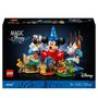 Ce modèle collector contient de nombreux personnages célèbres de Disney, dont Mickey Mouse dans sa tenue d’Apprenti sorcier au centre et la toute première minifigurine LEGO de Belle avec la rose enchantée de La Belle et la Bête. Il inclut également Geppetto sur un radeau dans Pinocchio, Lilo en train de surfer dans Lilo et Stitch, Simba sur le Rocher des Lions dans Le Roi Lion, Bruno dans la maison Madrigal d’Encanto, les balais magiques transportant de l’eau dans Fantasia ainsi que Sébastien le crabe et Polochon le poisson de La Petite sirène.