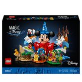Ce modèle collector contient de nombreux personnages célèbres de Disney, dont Mickey Mouse dans sa tenue d’Apprenti sorcier au centre et la toute première minifigurine LEGO de Belle avec la rose enchantée de La Belle et la Bête. Il inclut également Geppetto sur un radeau dans Pinocchio, Lilo en train de surfer dans Lilo et Stitch, Simba sur le Rocher des Lions dans Le Roi Lion, Bruno dans la maison Madrigal d’Encanto, les balais magiques transportant de l’eau dans Fantasia ainsi que Sébastien le crabe et Polochon le poisson de La Petite sirène.