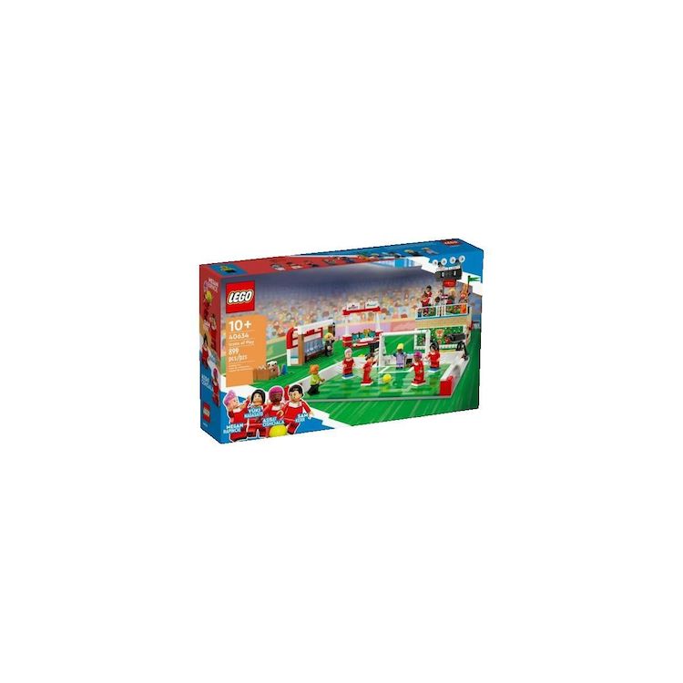Découvrez le set LEGO 40634, nommé 'Ikones de jeu', un jeu de construction captivant destiné aux passionnés de football âgés de 12 ans et plus. Ce kit comprend un terrain de football, un but, une station VAR, ainsi que 15 figurines de joueurs célèbres. Composé de 899 pièces en plastique multicolore,