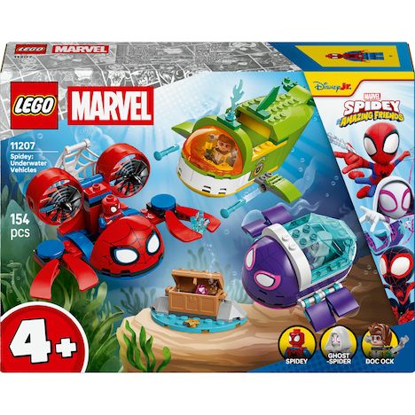 SOUS-MARINS DE SUPER-HÉROS ? Plongez dans le jeu avec le set de construction LEGO® ? Marvel Spidey et ses amis extraordinaires Spidey : les véhicules sous-marins (11207), pour les enfants, garçons ou filles, dès 4 ans. 3 MINIFIGURINES ? Les jeunes super-héros plongent dans des aventures captivantes avec Spidey, Ghost-Spider et Docteur Octopus, ainsi qu'avec leurs sous-marins intégrant de grandes briques de démarrage pour une construction rapide et amusante. CONSTRUIRE ET JOUER ? Placez le bonheur de créer entre les mains des enfants avec ce jeu de construction incluant des sous-marins et des accessoires, dont une banane, une gemme et un coffre au trésor. SUPER-HÉROS CONTRE MÉCHANT ? Le sous-marin crabe de Spidey est doté d'une toile d'araignée géante, le sous-marin tortue de Ghost-Spider d'une carapace transparente qui s'ouvre et le sous-marin baleine de Docteur Octopus de fusils sur les nageoires. CADEAU SPIDER-MAN ? Ce jouet de construction LEGO® ? Marvel favorise le développement des jeunes enfants et des fans de Spidey, et constitue un excellent cadeau d'anniversaire ou une belle surprise pour les garçons et les filles dès 4 ans. INSTRUCTIONS DE MONTAGE INTUITIVES ? Les instructions illustrées colorées sont conçues pour inspirer les enfants et leur permettre de construire en toute confiance. JOUETS DE CONSTRUCTION À PARTIR DE 4 ANS ? Les sets LEGO® pour les jeunes constructeurs leur inspirent des aventures dans un univers peuplé de leurs films, personnages de télévision et héros du quotidien préférés. DIMENSIONS ? Le sous-marin baleine de ce set de 154 pièces mesure plus de 8 cm de haut, 14 cm de long et 11 cm de large