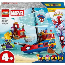 Mettez le cap sur l'imagination à bord du bateau pirate de l'équipe Spidey (11208) avec Spidey, le Bouffon Vert, Ghost-Spider et Miles « Spin » Morales. Ce jeu de construction encourage les garçons et les filles dès 4 ans à développer des compétences tout en s'amusant en mer et sur une île.