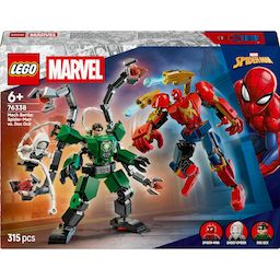 . COMBAT DE ROBOTS À CONSTRUIRE ? 2 armures robot entièrement articulées et 3 minifigurines LEGO® ? Marvel garantissent un affrontement XXL entre super-héros dans ce set de construction pour les garçons et les filles dès 6 ans. 3 MINIFIGURINES LEGO® ? MARVEL ? Affrontez l'horrible Docteur Octopus aux côtés de Spider-Man et Ghost-Spider dans un combat épique entre robots. JEU DE RÔLE AVEC DES SUPER HÉROS ? Les robots de Spider-Man et Docteur Octopus sont entièrement articulés pour maximiser les possibilités de jeu. Ils comprennent des cockpits qui s'ouvrent pour accueillir les minifigurines des pilotes. ACCESSOIRES DE COMBAT LEGO® ? Le jouet de construction comprend 2 cordes en toile, 2 fusils à tenons pour le robot au style Iron Spider, 4 tentacules articulés pour le robot de Docteur Octopus et 2 toiles pour Ghost-Spider. BELLE IDÉE DE CADEAU D'ANNIVERSAIRE ? Offrez à un jeune super-héros deux fois plus d'amusement pour son anniversaire avec le set LEGO® ? Marvel Le combat des robots : Spider-Man contre Docteur Octopus (76338). AUTRES ROBOTS DE SUPER-HÉROS ? Les enfants peuvent collectionner et combiner une vaste gamme de sets de construction de robots LEGO® (vendus séparément) pour enrichir leurs aventures de super-héros. TOUT UN UNIVERS DE SETS LEGO® ? MARVEL ? Invitez les enfants à vivre des aventures pleines d'imagination mettant en scène les personnages culte et les scènes débordantes d'action des films Marvel. DIMENSIONS ? Le robot de Spider-Man de ce set de construction de 315 pièces mesure plus de 13 cm de haut