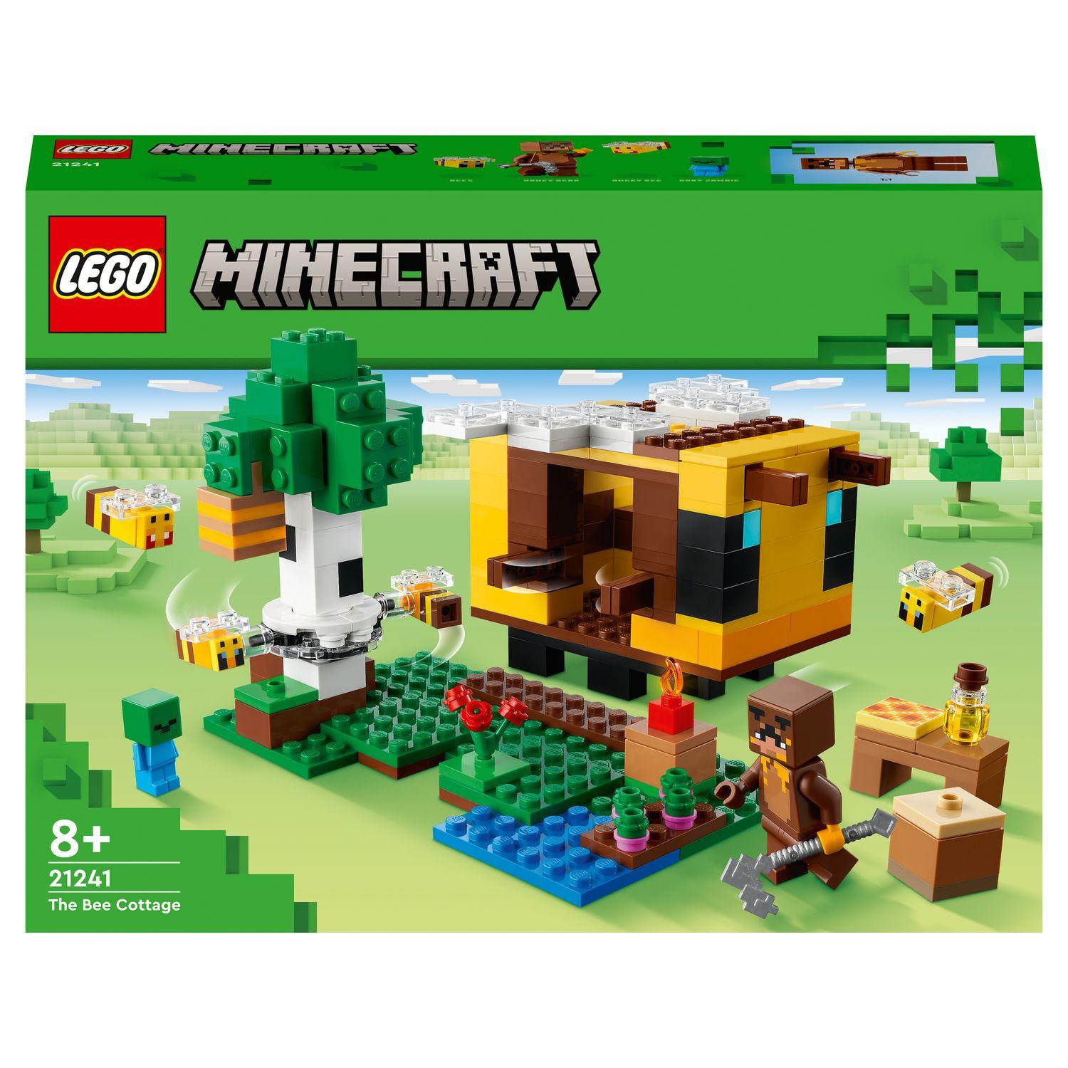Minecraft 21241 La cabane Abeille, Jouet, Ferme avec Maison, Zombie et Figurines Animaux
