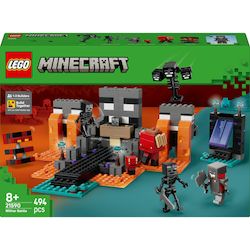 PORTAIL ET SANCTUAIRE MINECRAFT® ? Traversez le portail et rendez-vous au sanctuaire du Wither avec ce set de construction pour les garçons et les filles passionnés du jeu vidéo de 8 ans et plus. 7 PERSONNAGES MINECRAFT® ? Rejoignez un Guerrier écarlate, 2 Wither squelettes, un Arpenteur, un bébé Arpenteur, un Wither et un cube de magma dans La bataille du Wither LEGO® Minecraft® (21590). JOUET DE GAMER ? Avec ce set Minecraft® aux multiples facettes, les enfants traversent le portail du Nether pour se rendre au sanctuaire du Wither, qui inclut une fonction d'explosion faisant apparaître le Wither. ACCESSOIRES DE COMBAT ? Un établi, une potion de soins, une massue, 3 crânes de Wither squelettes, un bâton avec des champignons biscornus et une précieuse étoile du Nether stimulent le jeu et l'imagination des enfants. CADEAU POUR ENFANTS ? Ce set LEGO® Minecraft® est un beau cadeau à offrir aux joueurs de Minecraft pour un anniversaire, les fêtes ou toute autre occasion. MODE CONSTRUIRE ENSEMBLE ? L'application LEGO® Builder offre une expérience collaborative guidée, où chaque ami ou membre de la famille peut, depuis son propre appareil, construire une partie du set. SETS POUR JOUEURS DE MINECRAFT® ? Les jouets de construction LEGO® Minecraft offrent aux enfants une vaste gamme de décors, de fonctionnalités et de créatures du célèbre jeu vidéo. DIMENSIONS ? Le sanctuaire du Wither de ce set de 494 pièces mesure plus de 10 cm de haut, 22 cm de large et 24 cm de profondeur