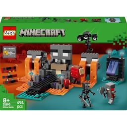 Ce set débordant d’action et de détails de Minecraft comprend des personnages du jeu vidéo, tels qu’un Guerrier écarlate, 2 Wither squelettes, un Arpenteur, un cube de magma et un boss Wither. Il inclut également un portail du Nether et un sanctuaire avec un établi et un Wither caché que les enfants peuvent invoquer avec la fonction d’explosion. Les enfants affrontent leurs ennemis, chevauchent l’Arpenteur et vivent des aventures avec ce jouet, qui constitue un beau cadeau pour les joueurs de Minecraft, les constructeurs LEGO et les fans de jeux vidéo. Le mode Construire ensemble de l’appli LEGO Builder permet à chaque ami ou membre de la famille de construire une partie du set depuis son propre appareil. Contient 494 pièces.
