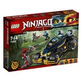 • Le Samouraï VXL blindé comprend un cockpit pour figurine qui s’ouvre avec un pare-brise bleu transparent, de grandes roues en caoutchouc, des doubles fusils rapides à petites briques, un système de direction à quatre roues spécial qui bascule et des lames de ninjas dorées.
