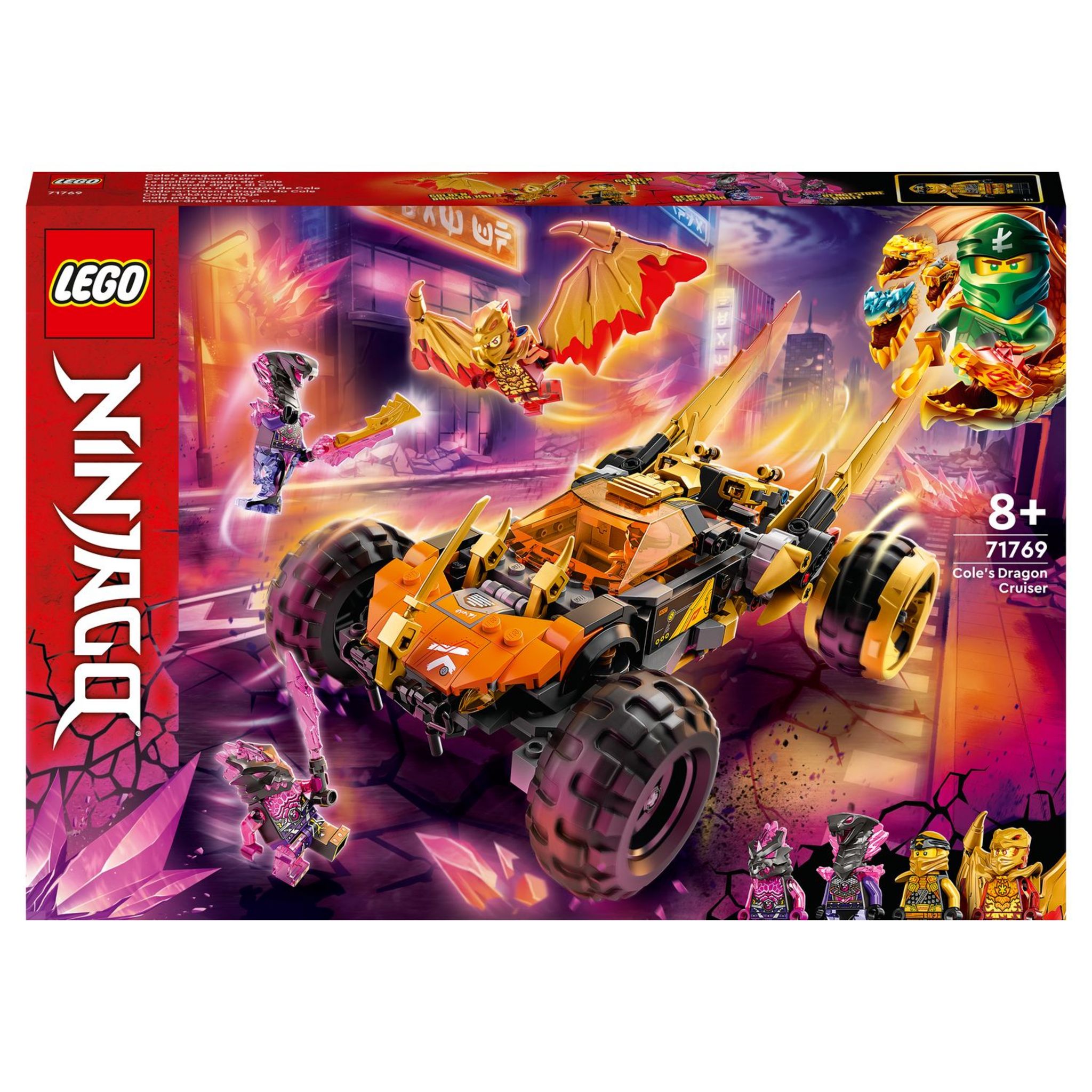 - Les enfants peuvent recréer l'action de la série télévisée NINJAGO : Cristallisés avec cette machine jouet, le Dragon Off-roader LEGO NINJAGO de Cole, et les 4 minifigurines incluses