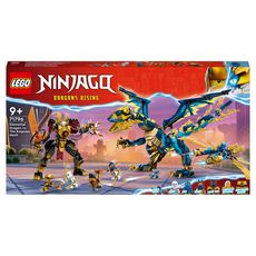 [Cet avis a été recueilli en réponse à une offre.] Gros emballage pour contenir ce dragon et tous les accessoires qui l'accompagnent. 9 sachets, ça parait beaucoup, mais la notice de montage très bien illustrée permet un assemblage simple et sans prise de tête. Les articulations sont particulièrement bien pensées, cela augmente les possibilités de mouvement des sujets. Le résultat est un très beau dragon de grande envergure qui va pouvoir se mesurer à un grand robot et un engin volant. Beaucoup de petits personnages enrichissent ce coffret.