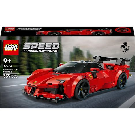 . MAQUETTE DE FERRARI ? Voiture de course Ferrari SF90 XX Stradale LEGO® Speed Champions (77254) pour les garçons et les filles dès 9 ans. Un modèle à construire, à exposer et à piloter sur piste et sur route pour des jeux haletants. 1 MINIFIGURINE DE PILOTE ? Ce kit inclut une voiture de course et une minifigurine de pilote avec une combinaison et un casque Ferrari, des cheveux ainsi qu'une clé permettant également d'appliquer les autocollants et de séparer les briques. DÉTAILS AUTHENTIQUES ? Inclut des détails fidèles à l'original, dont un habitacle avec cabine avancée, un aileron arrière, des sorties d'échappement hautes et des jantes ornées du célèbre écusson Ferrari. SUPERBE DÉCORATION À EXPOSER ? Après avoir mis en scène des histoires palpitantes avec ce bolide LEGO® à collectionner, les garçons et les filles peuvent l'exposer dans leur chambre, sur une étagère, un bureau ou une table de chevet. CADEAU POUR FANS DE VOITURES ? Offrant une expérience de construction et de jeu amusante, cette voiture de course Ferrari SF90 XX Stradale est un fabuleux cadeau pour les enfants dès 9 ans ou les adultes collectionneurs de modèles réduits. DÉVELOPPER LA PASSION DE LA COURSE ? Découvrez d'autres véhicules LEGO® Speed Champions pour enfants (vendus séparément), regorgeant de détails authentiques. VOITURES DE LÉGENDE, POUR JOUER ET EXPOSER ? Les kits LEGO® Speed Champions invitent les enfants et les fans de voitures à construire des répliques de quelques-unes des plus grandes légendes automobiles. DIMENSIONS ? La maquette de Ferrari de ce set de 339 pièces mesure plus de 4 cm de haut, 17 cm de long et 13 cm de large