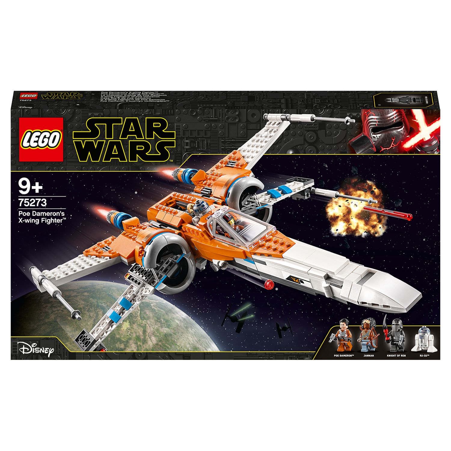 - Ce superbe vaisseau inclut 3 figurines : Poe Dameron, un Chevalier de Ren et Jannah, tous équipés d'armes, ainsi que R2-D2.