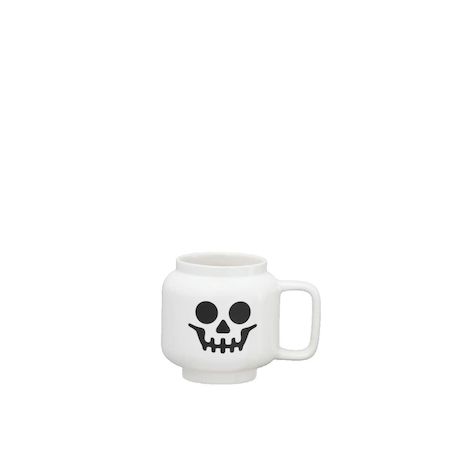 Découvrez la Tasse LEGO Tête de minifigurine en céramique blanche, au design original en forme de tête de minifigurine LEGO avec un motif squelette humoristique. D'une capacité de 530 ml, cette tasse robuste et certifiée CE est idéale pour déguster café, thé ou chocolat chaud. Mesurant 10 cm de haut