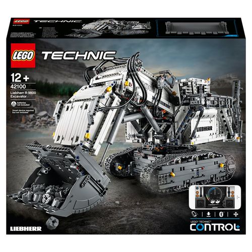 - La pelleteuse Liebherr R 9800 LEGO® Technic peut être contrôlée via un smartphone ou une tablette, avec 4 écrans différents. Pour obtenir la liste des dispositifs compatibles : LEGO.com/devicecheck.