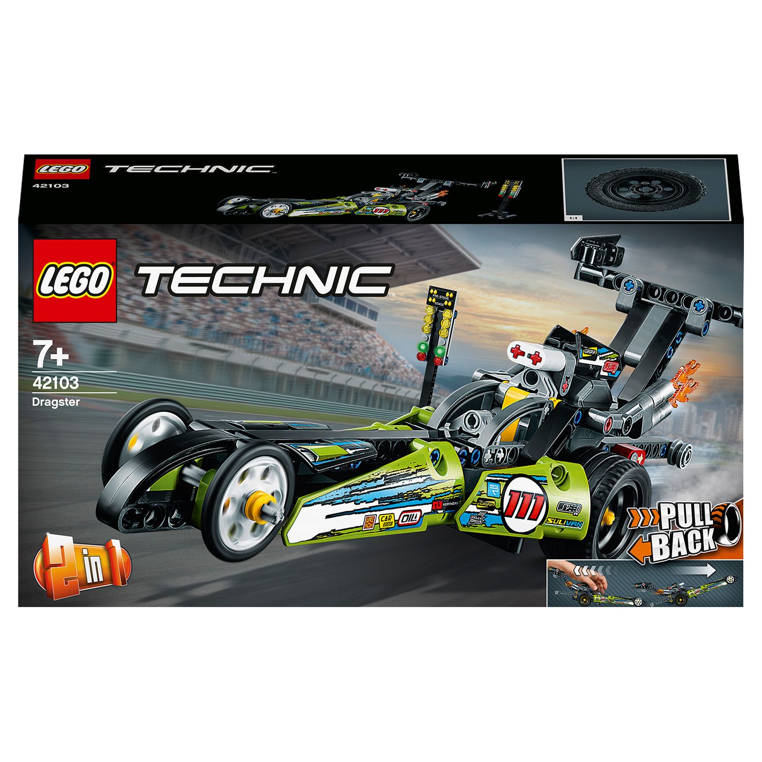 Un défi passionnant attend les jeunes pilotes de course avec ce dragster LEGO® Technic à rétrofriction qui se transforme en superbe bolide. 2-en-1, ce set de construction LEGO® Technic 42103 comprend un dragster de course pouvant se transformer en un superbe bolide à rétrofriction. Les enfants vont adorer apprendre à assembler leur propre modèle de dragster. Une fois la construction terminée, le jeu continue. Après avoir installé les feux de circulation miniatures, il suffit de faire reculer le véhicule et de le lâcher pour qu'il vrombisse sur la piste.