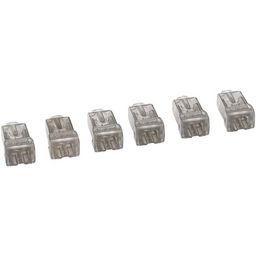 Borne de connexion nylbloc auto pour fil rigide 6 Bornes pour 2 fils Gris.Permettent un raccordement direct et fiable, sans vis, après un simple dénudage des fils.Nylbloc(TM) auto, pour fils rigides.Pour fils rigides de 0,75 à 2,5 mm boîtier polycarbonate transparent : connexions visibles.Livrées en