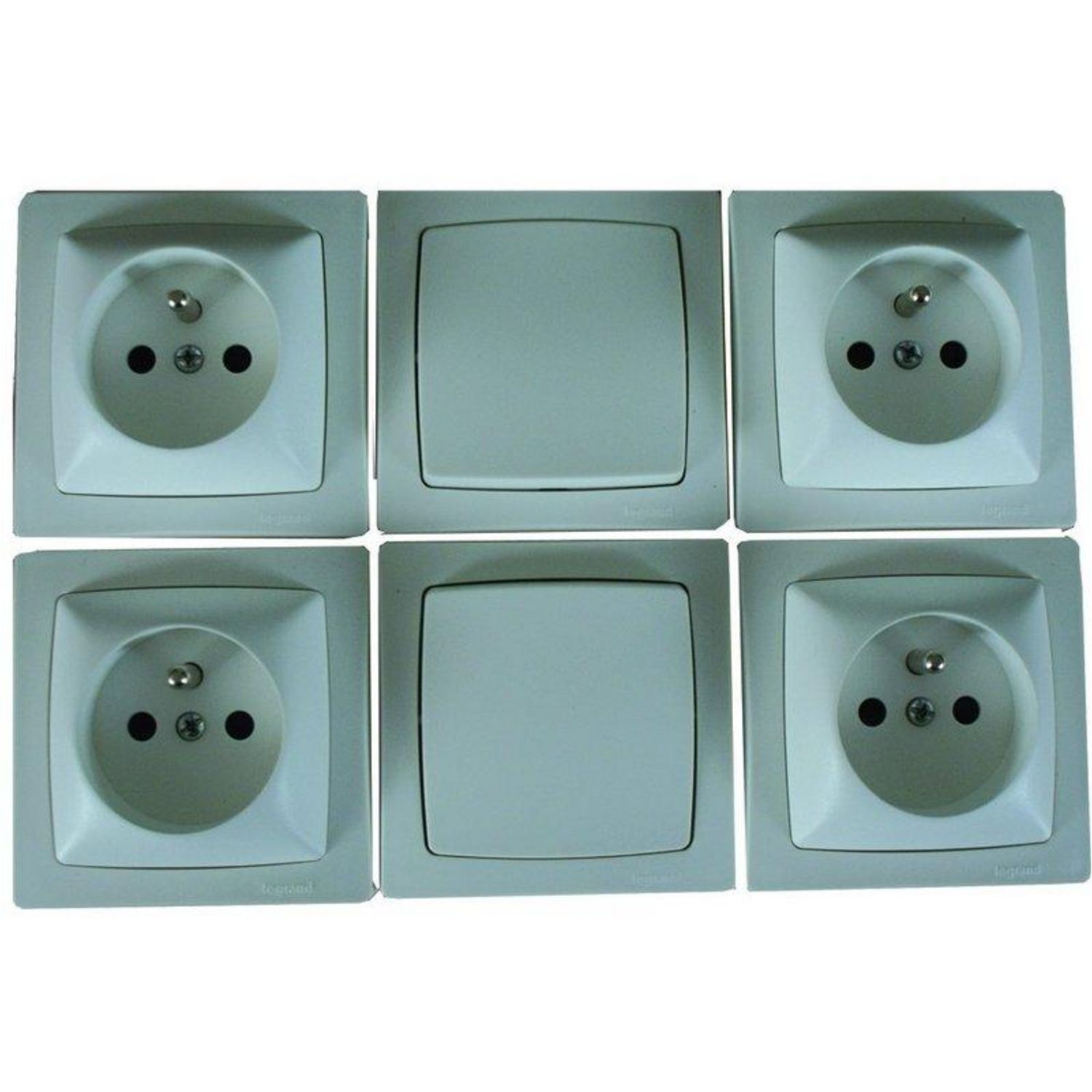 Lot de 2 interrupteurs + 4 prises de courant avec terre saillie.