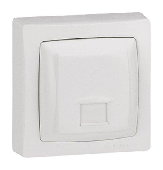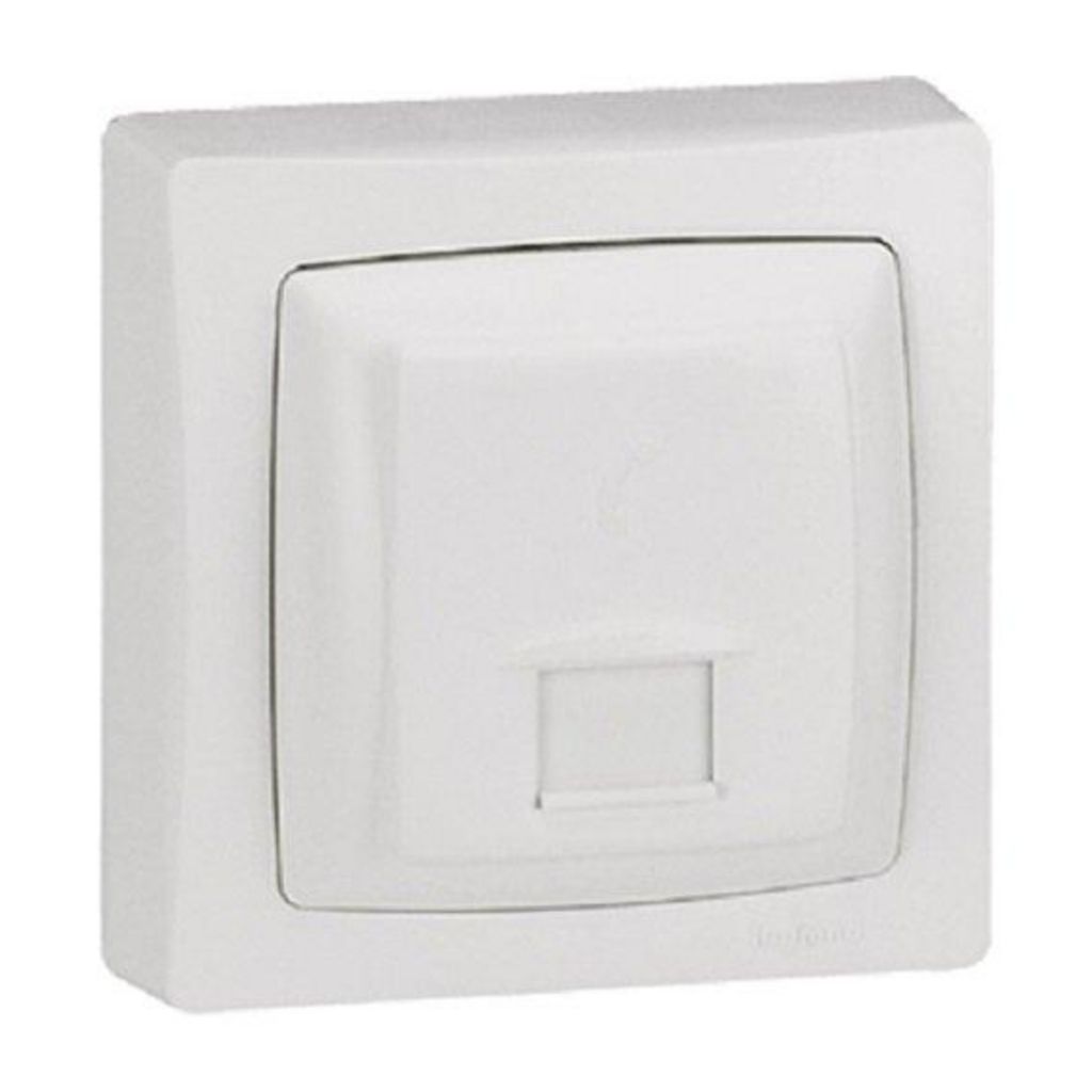 Prise électrique RJ 45.Coloris Blanc.Dimensions 7 x 7 x 4,5 cm.Matière plastique.Série les apparents.Prise rj45 multimédia.Catégorie 5 e u/ftp saillie blanc.Fixation murale en saillie-vis non fournies.Prise rj45 cat 6e f/utp 9 contacts.