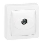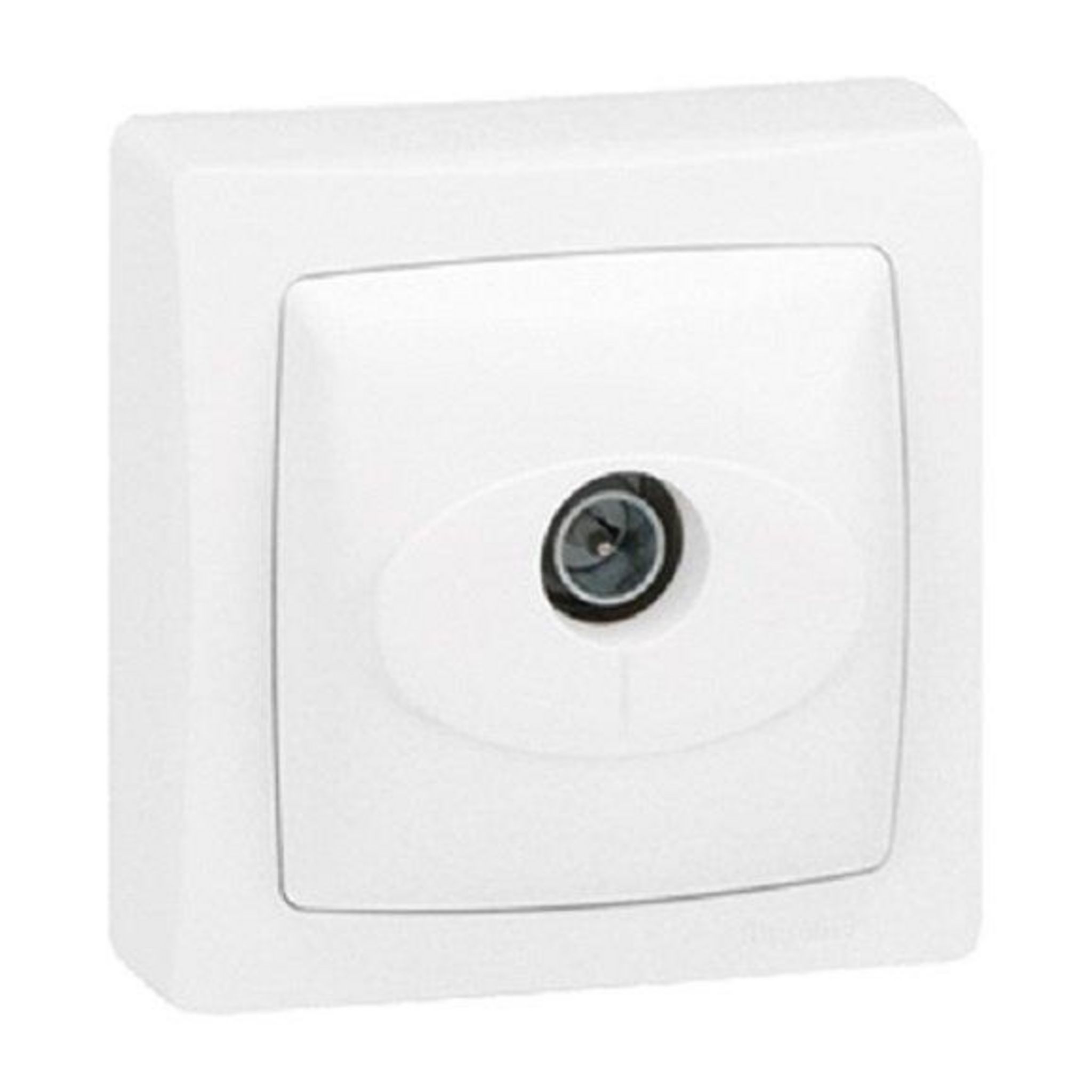 Prise télévision simple.Coloris Blanc.Dimensions 7 x 7 x 2,5 cm.Matière plastique.Série les apparents.Fixation murale en saillie-vis non fournies.Prises télévision mâle.Diamètre 9,52 millimètre.