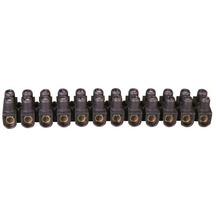 Borne de raccordement Nylbloc.Borne de raccordement permettant de raccorder plusieurs fils en sécurité.Noir - barrette de 12 bornes.Capacité : 16 mm.