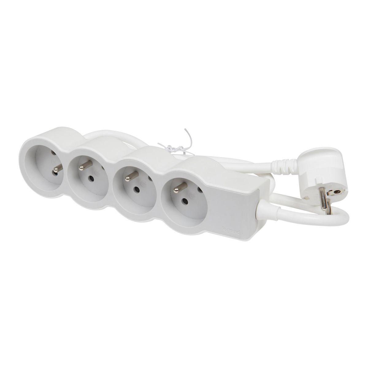 Bloc multiprise extra-plat 4 prises avec terre cordon 1,5 m blanc/gris clair
