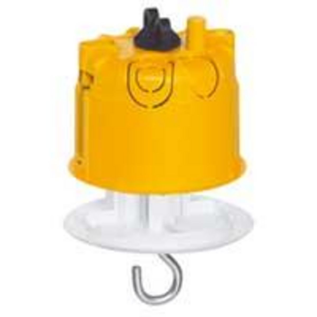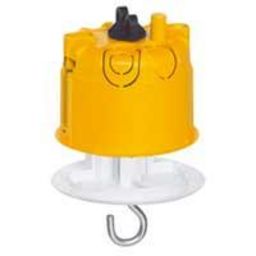 BoÎte à encastrer ronde LEGRAND simple pour plafond en plaque de plâtre, avec fiche pour lustre.Diamètre : 67 mmColoris : jaunePour accroche de luminaire au plafond.