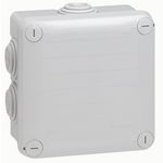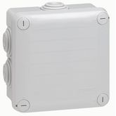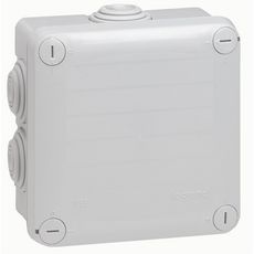 BoÎte de dérivation carrée Gris.Ouverture et fermeture du couvercle par 1/4 de tour avec tournevis plat, repérage o et i.7 embouts.Dimensions intérieures : 105 x 105 x 55 mm.