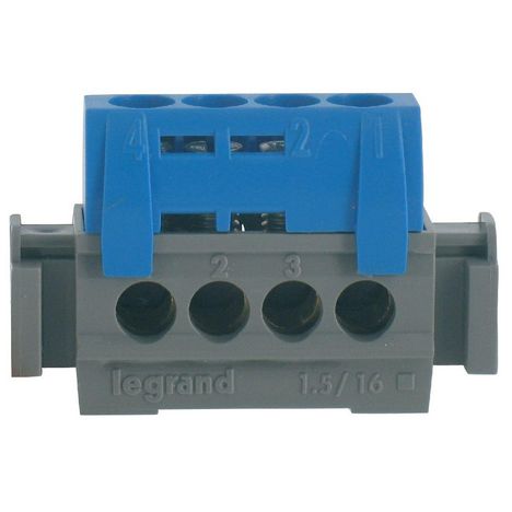 Bornier neutre bleu 4 bornes 16mm²