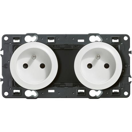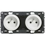 Double prise de courant affleurante avec terre 2 x 2 Pôles + Terre pré câblée Blanc à composer.